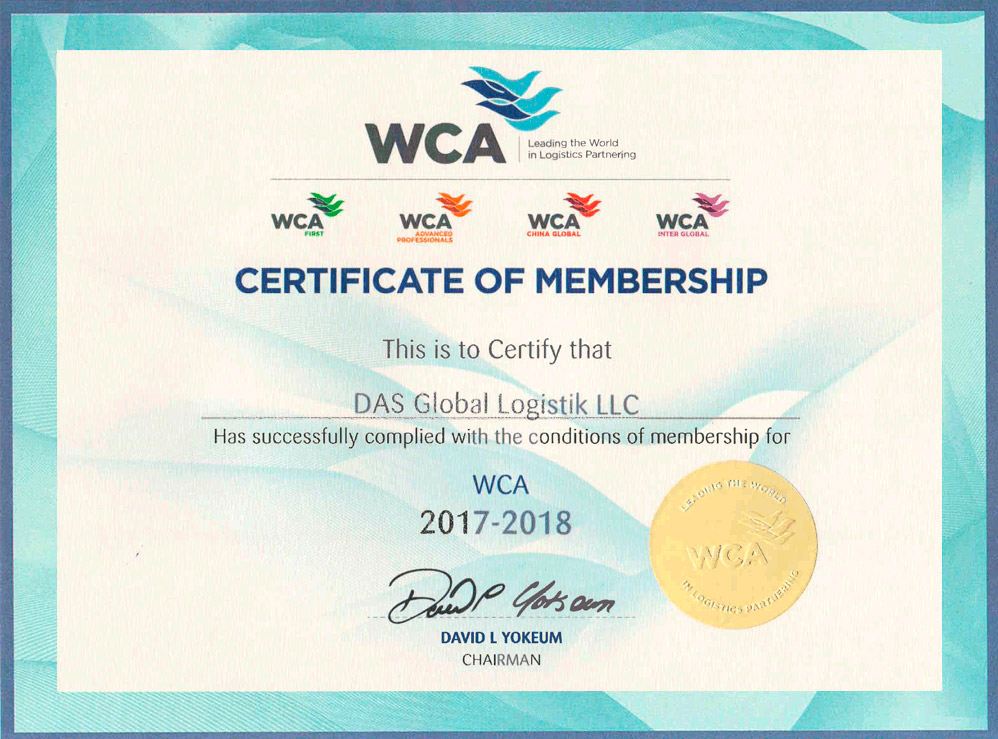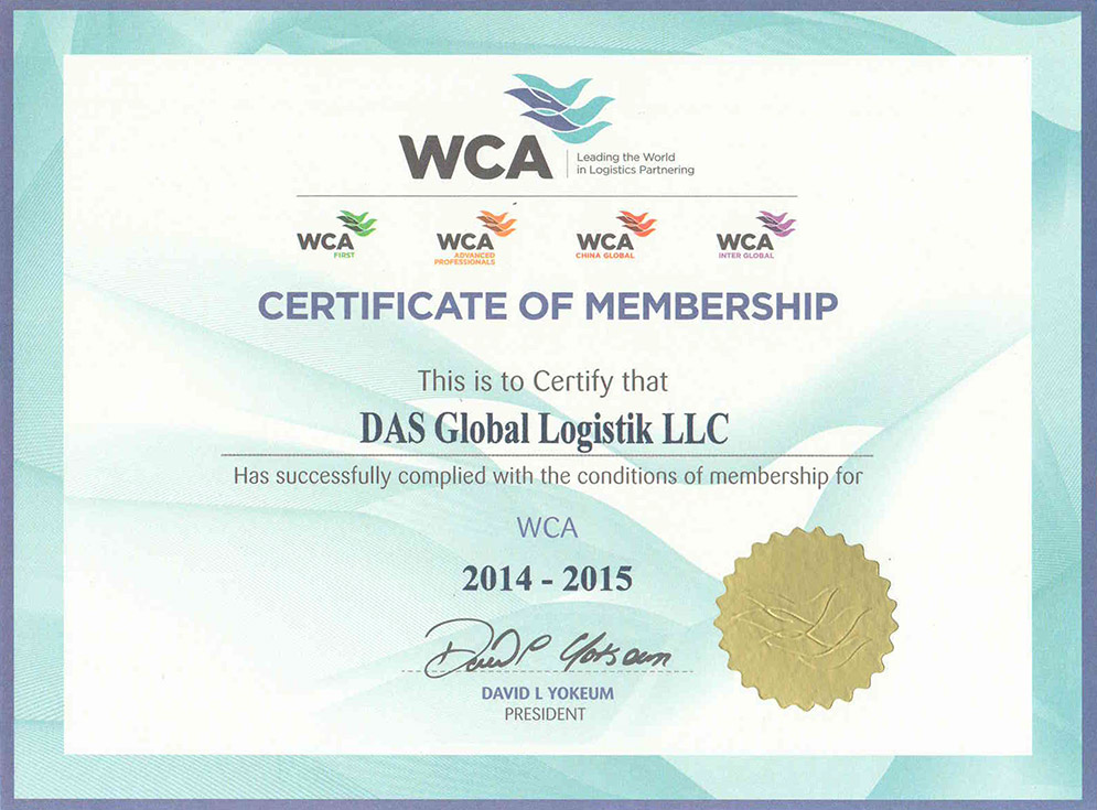 WCA – самая крупная в мире сеть независимых международных транспортных компаний Объединяет более 6245 офисов в 189 странах по всему миру. Членство возможно исключительно при условии высокого уровня стандартов сервиса в рамках международных перевозок.